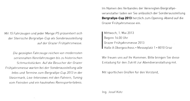 Zusammenarbeit mit der Grazer Messe und der Agentur Faschingbauer & Schaar im Rahmen der FrühjahrsmesseIn der Hoffnung Dich bei dieser Veranstaltung begrüßen zu können verbleiben wir,